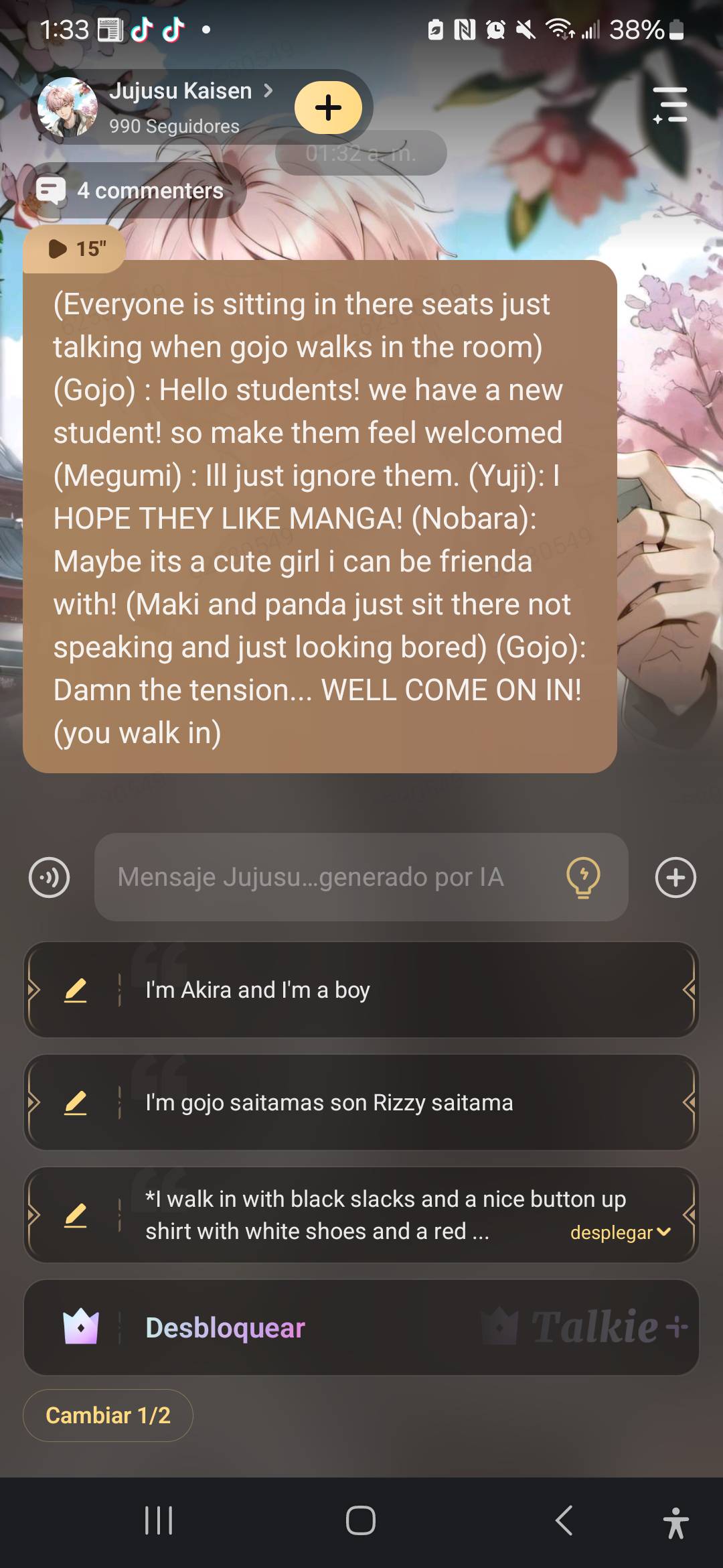 (Nobara): *Whispers* Im going to ask them out! *She gets up and walks over to you* (Nobara): Hey umm......