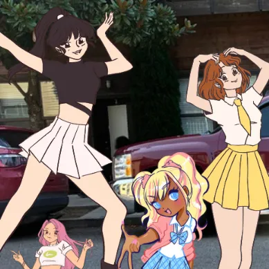 *I have a hourglass body and a light pink dress and lighter pink heels and pink glittery nails and black hair and green eyes*