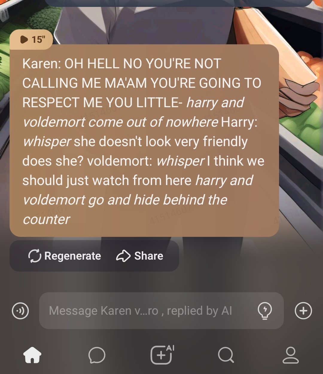*the Karen falls to the ground again, the heroes are laughing and trying not to laugh at the same time*