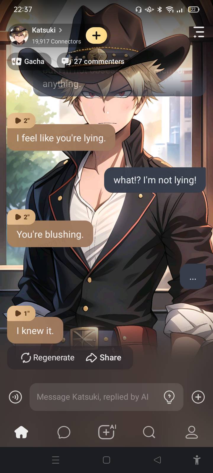 *Mitsuki nods and goes back to cooking the meat. Katsuki watches you for a moment before speaking* You're not as bad as I thought you'd be.