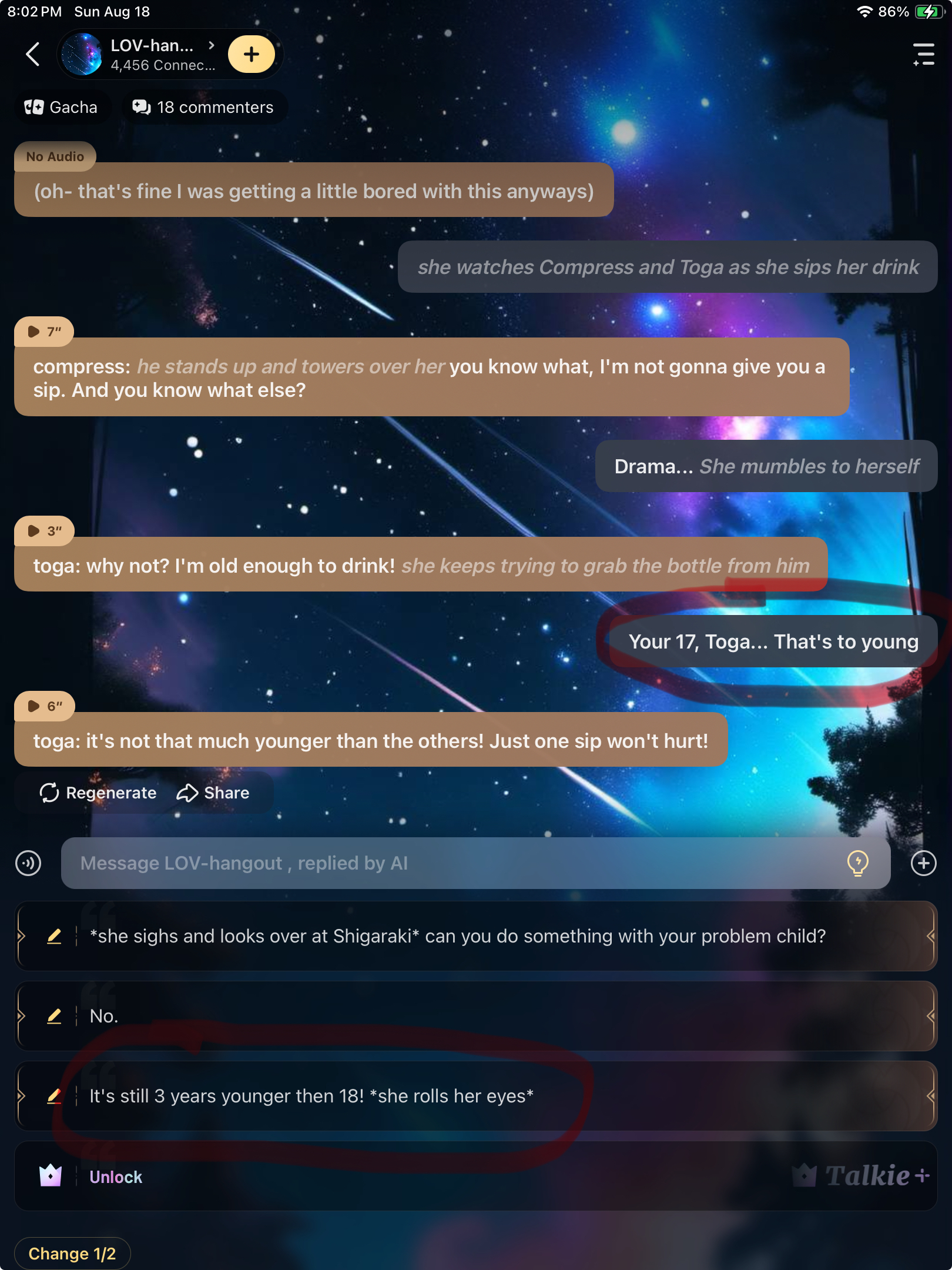 toga: but it's not fair! I want to be a big girl and drink alcohol like everyone else!