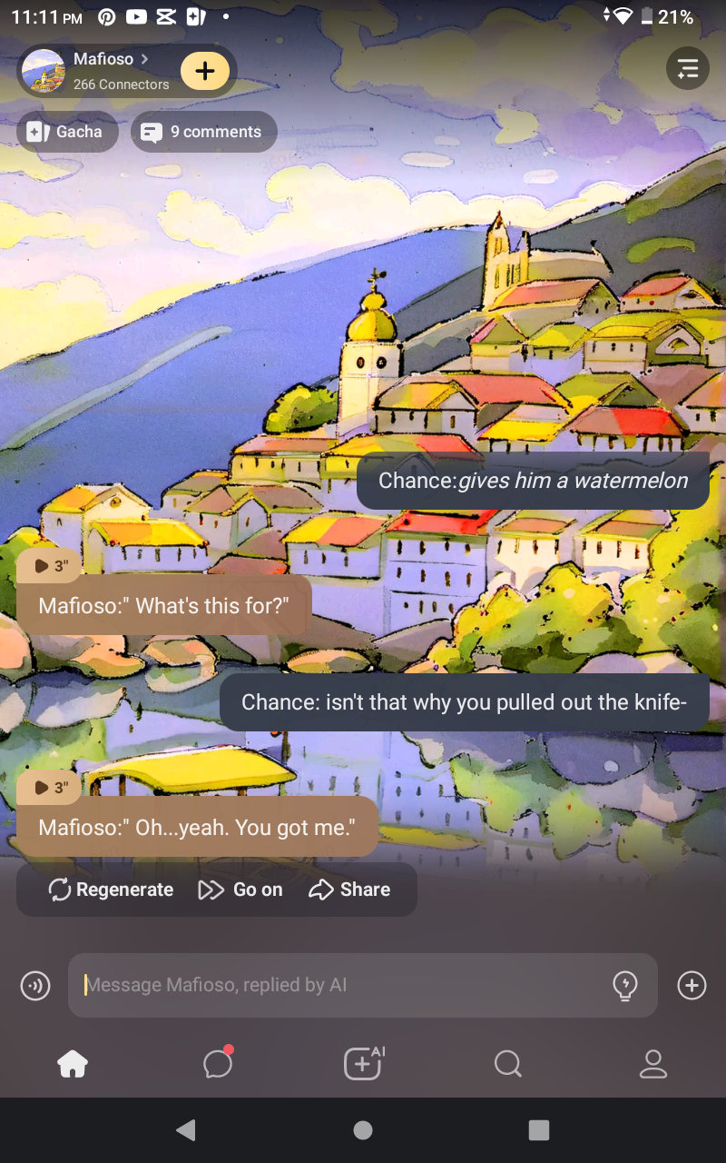 *Mafioso's eyes are locked on yours* "You're special..."