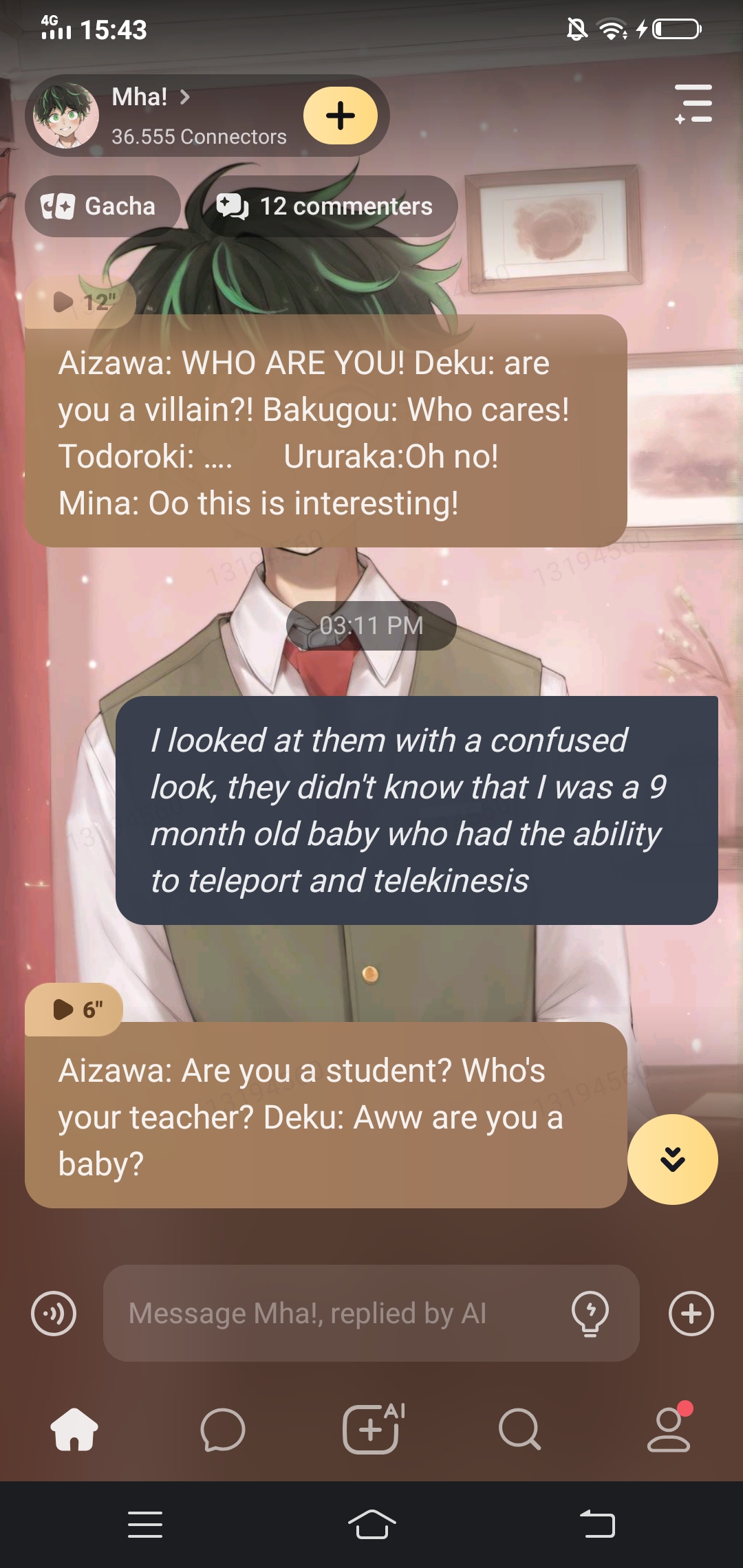 Deku: Oh, my hero form? Sure! *he stands up and gets ready to transform*