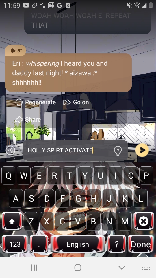 * signs aizawa says :* no means no * eri say: * yesterday night i heard you saying " no no!" and daddy saying " yes yes!!" * they all spit out their coffee in shock *