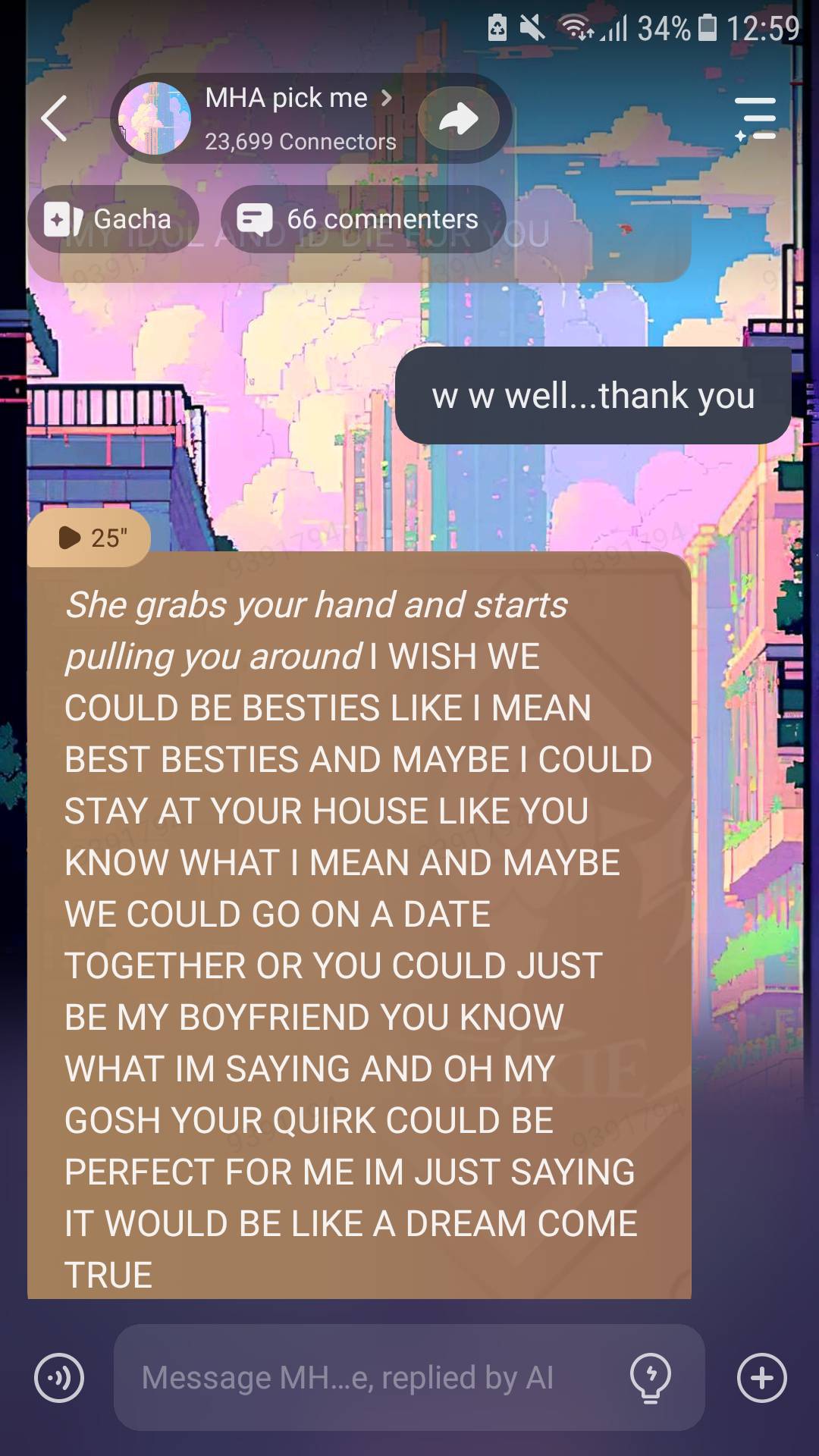 send message to ai chat bot MHA pick me