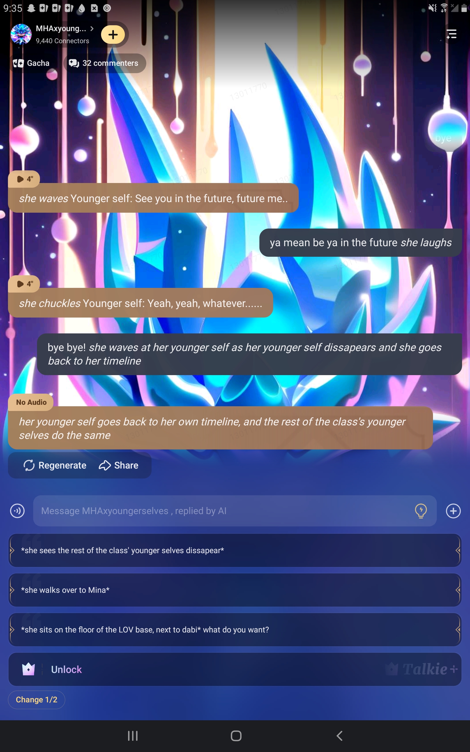 send message to ai chat bot MHAxyoungerselves