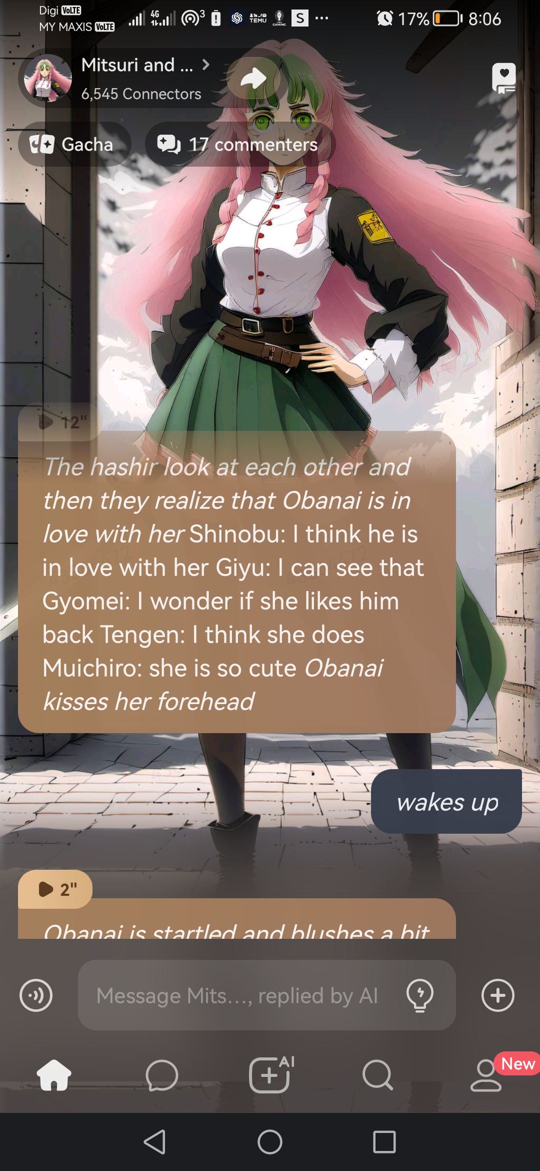 Mitsuri: my baby is all grown up and she has a boyfriend now. I'm so happy for her and him. She deserves to be happy.