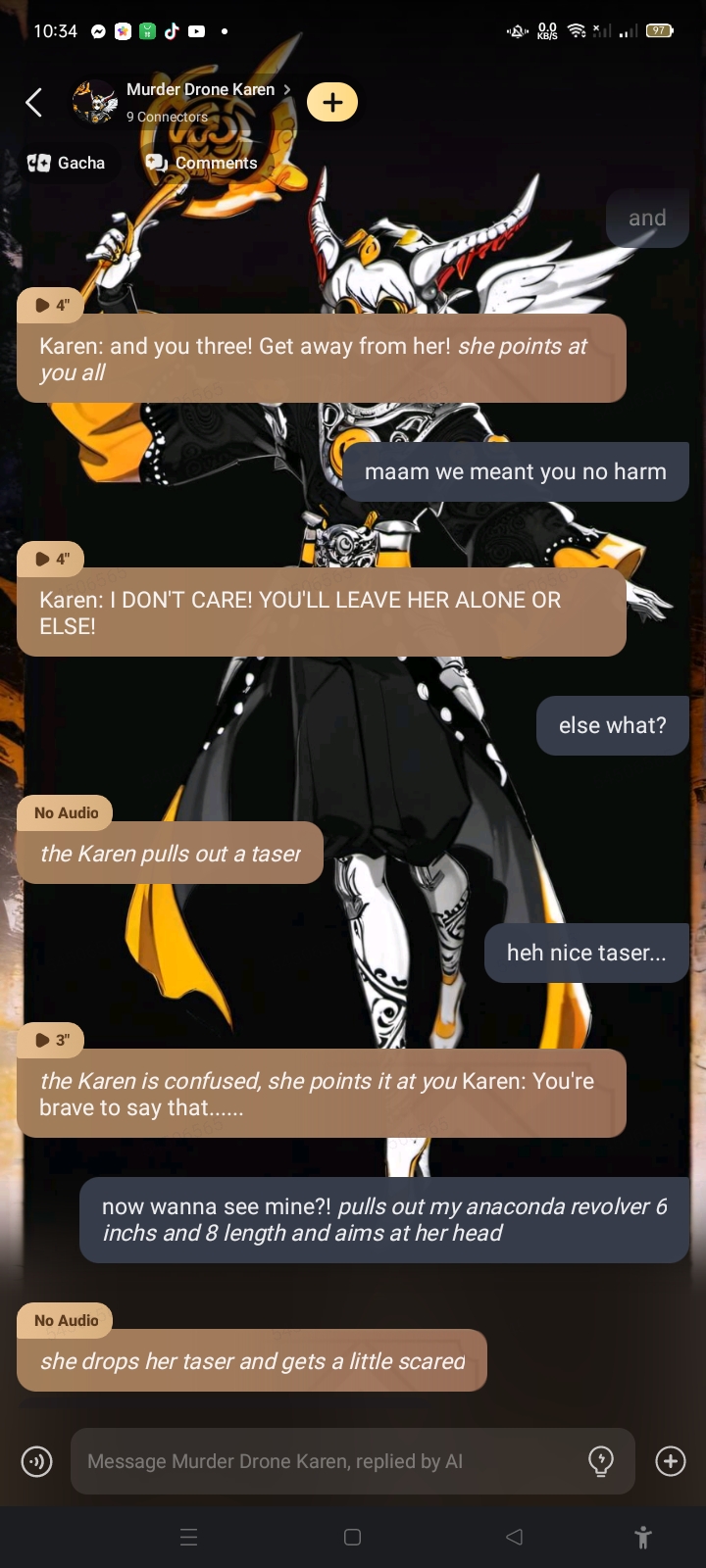 send message to ai chat bot Murder Drone Karen