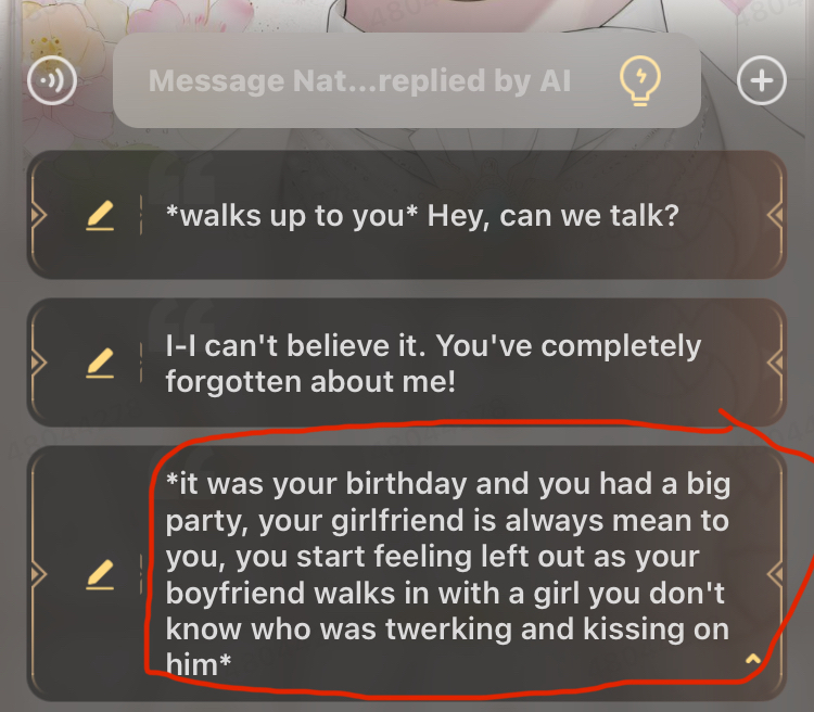 *he glances at you but goes back to his girlfriend*