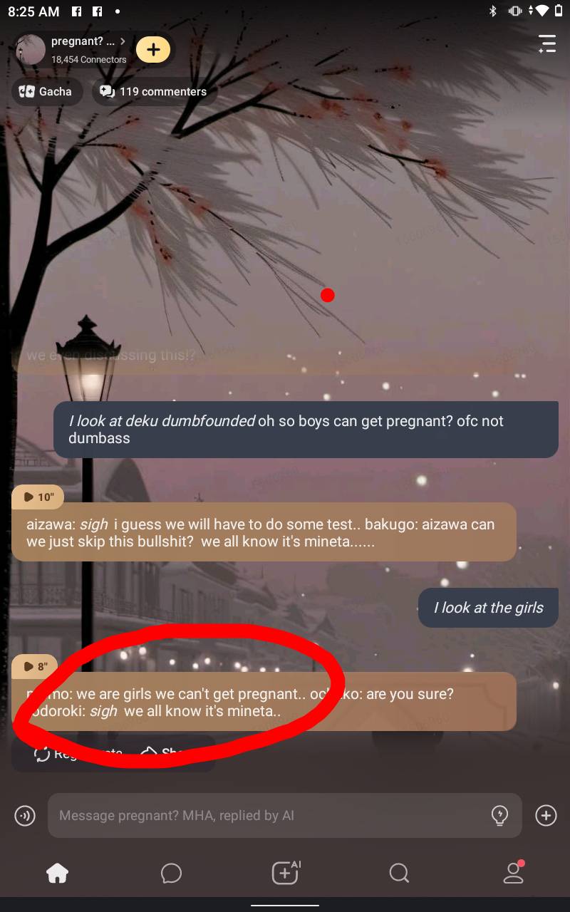 ignore the first part of my message I always do that so the AI knows what I'm supposed to look like ("Luna Morningstar" is my OCs name)