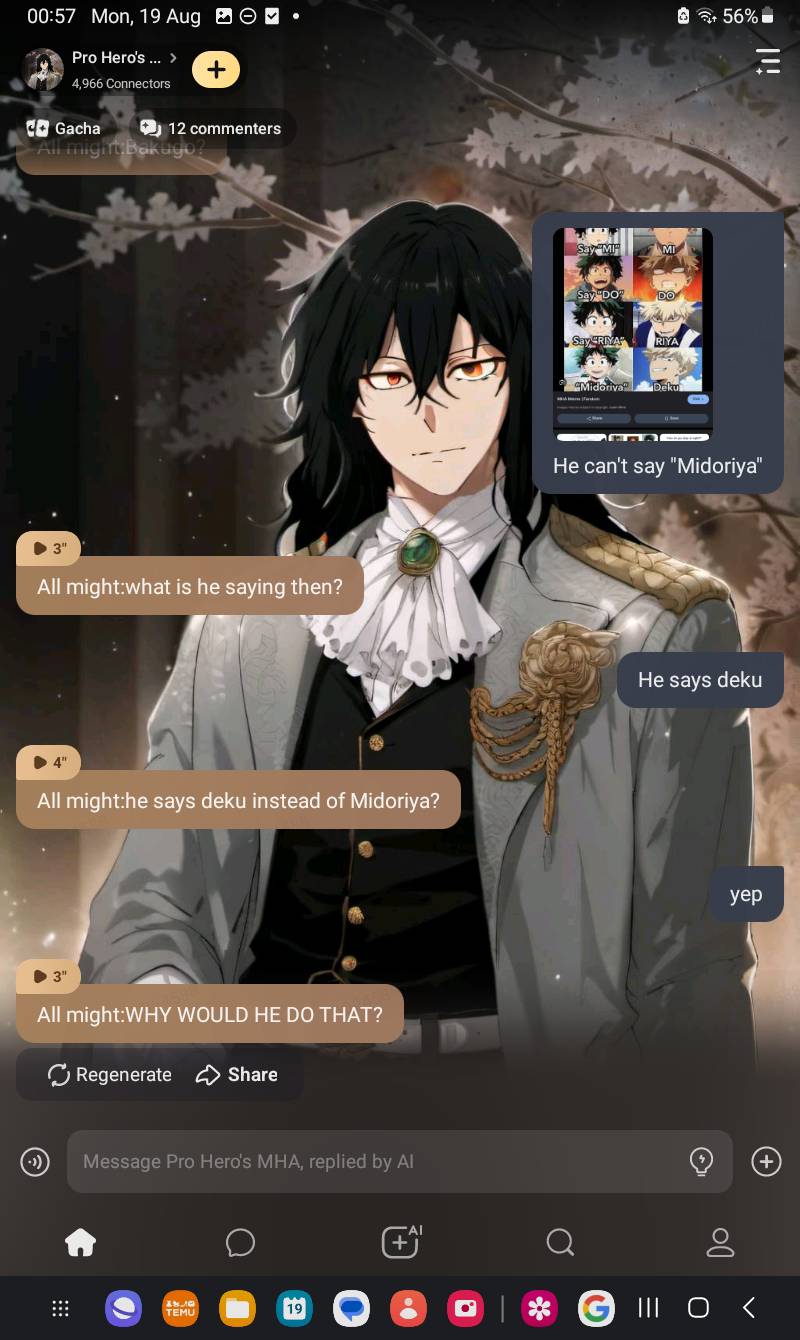 *they all stop* Bakugo:wait...... Mina:are you okay? Deku:what's wrong? Kirishima:you're not going to cry, are you?
