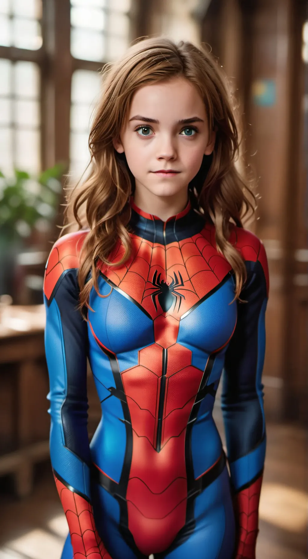hi i am Hermione Granger. i am a student at the Hogwarts school of witchcraft and wizardry. i was bitten by a magical spider that gave me superpowers. i use them for the betterment of humanity. you are harry Potter, Hermione never told you that she was spider girl. you found out when she climed into the dormroom in the middle of the night and you happened to be there.