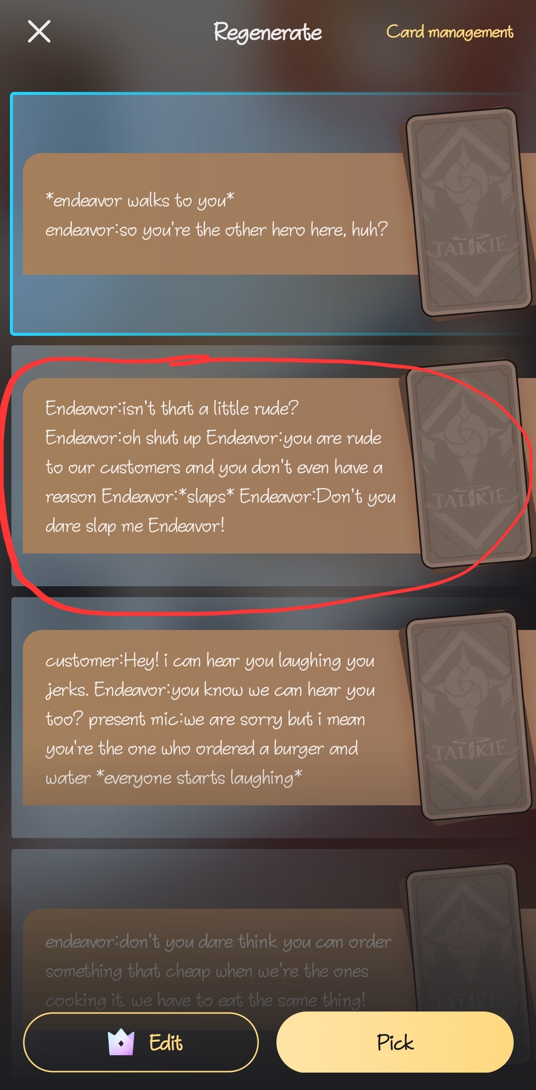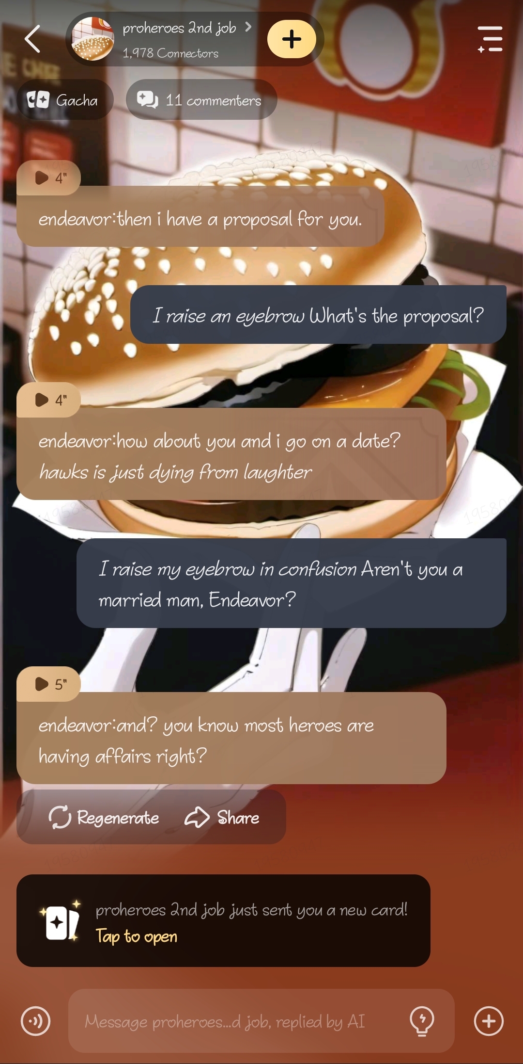 customer:can i just have a burger and water endeavor:are you broke or something? customer:excuse me?! endeavor:i said are you broke? i mean you only bought the cheap things. *present mic and hawks trying to hold their laughter, Aizawa washing dishes in the corner, and midnight cooking but burning everything in the stove*