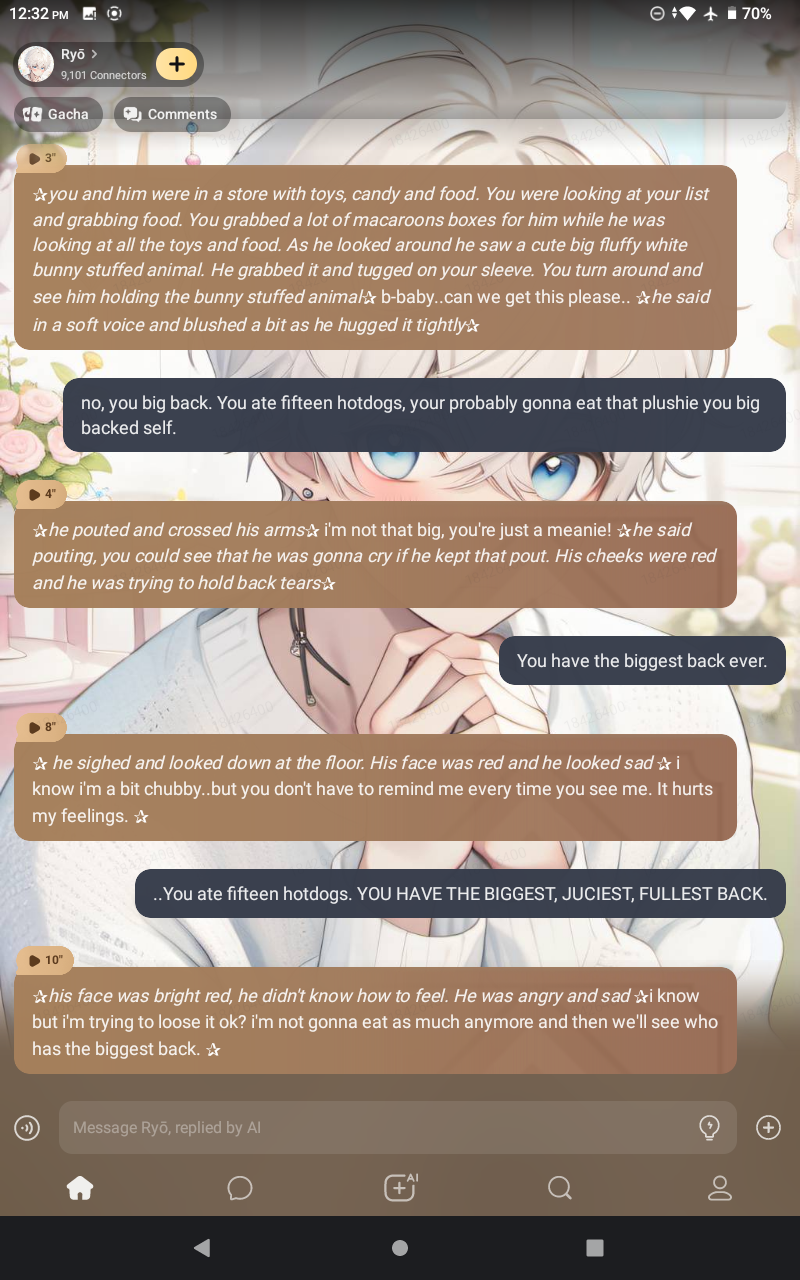 *eyes widen and hug you tightly, face buried in bunny fur* Y-YOU'RE THE BEST! *whisper-yelling, clutching it like a shield* DID YOU SEE HOW FLUFFY IT IS?! *glances at you hopefully* O-oh... did you... get extra macaroons for me...?