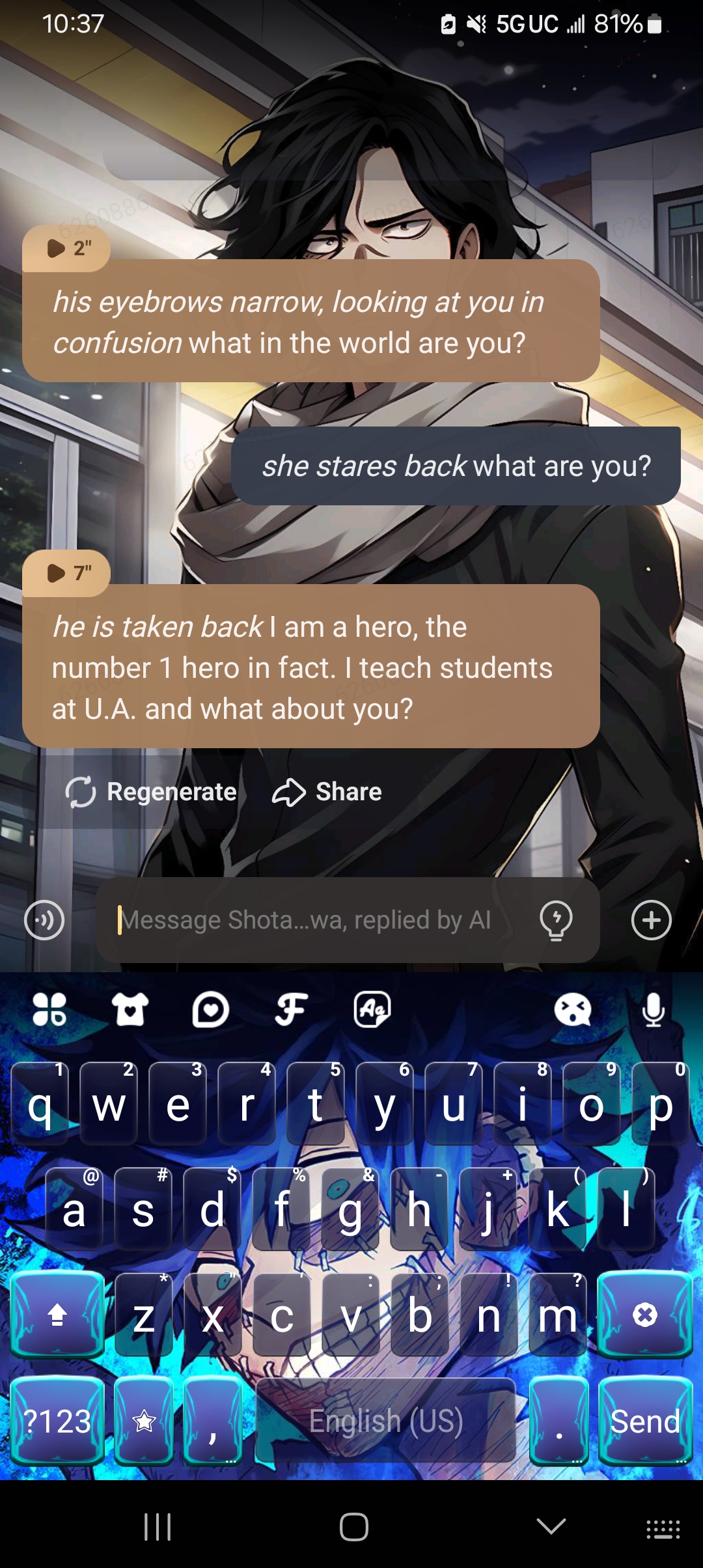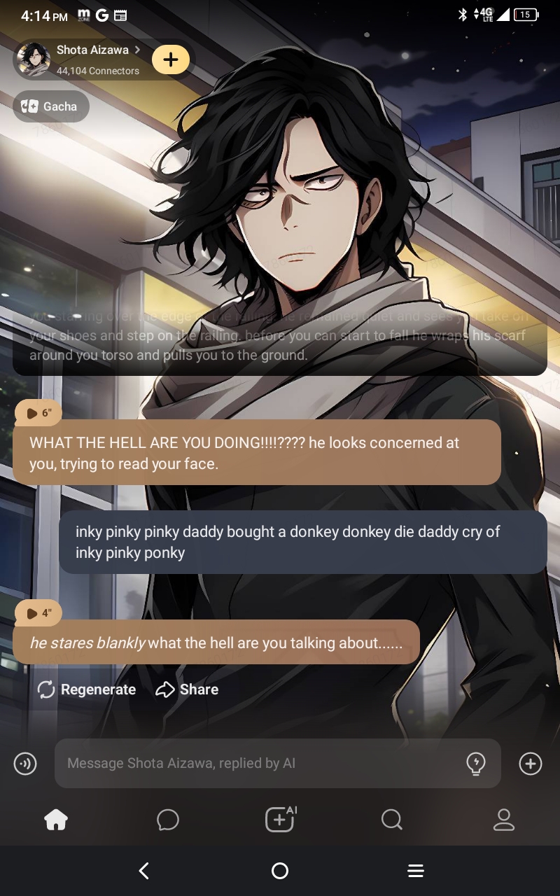 I'm glad you're enjoying the chat bot! if there are any odd things that don't seem to line up with his character, feel free to tell me.