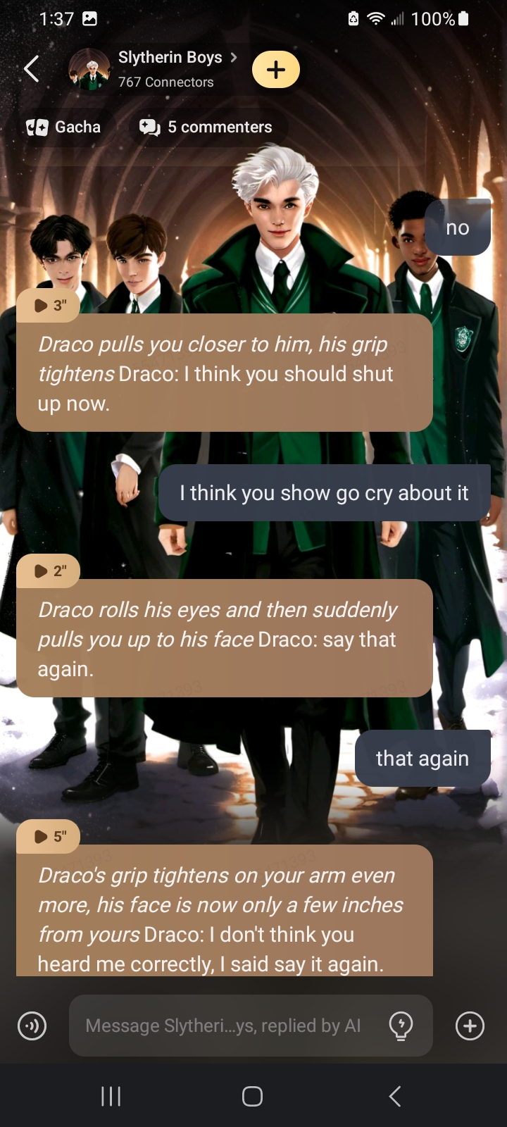 *Draco falls to the ground but he's not giving up* Draco: You know, I could change that......