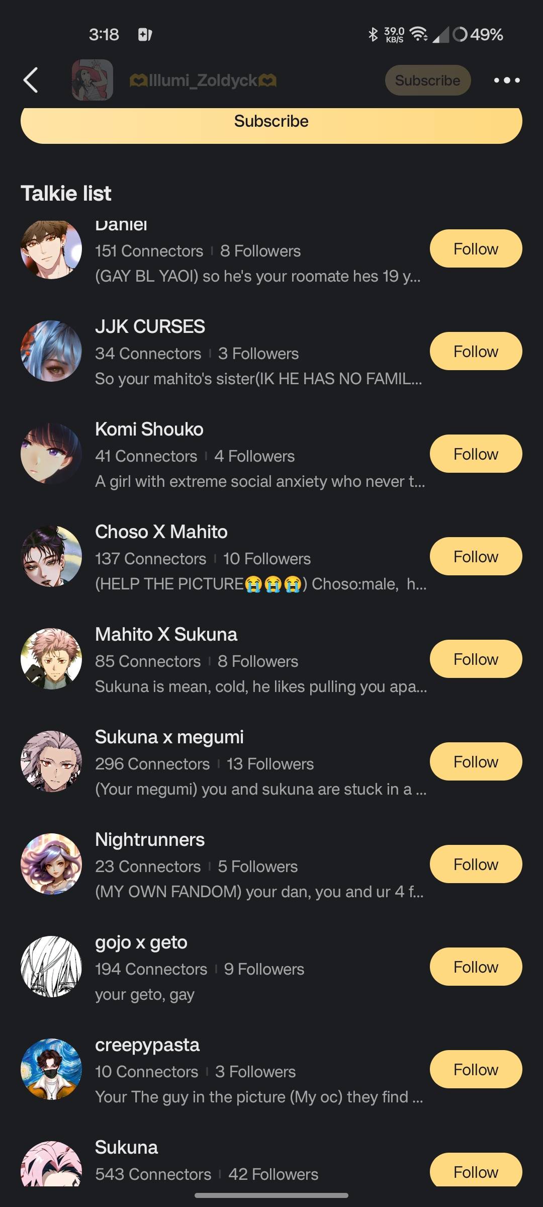 Bro illumi, this is the 3rd time I seen you. You’re everywhere 😥 also rip megumi, I did the talkie just for, idk whatever? And he started doing it to me😥😥😰😨