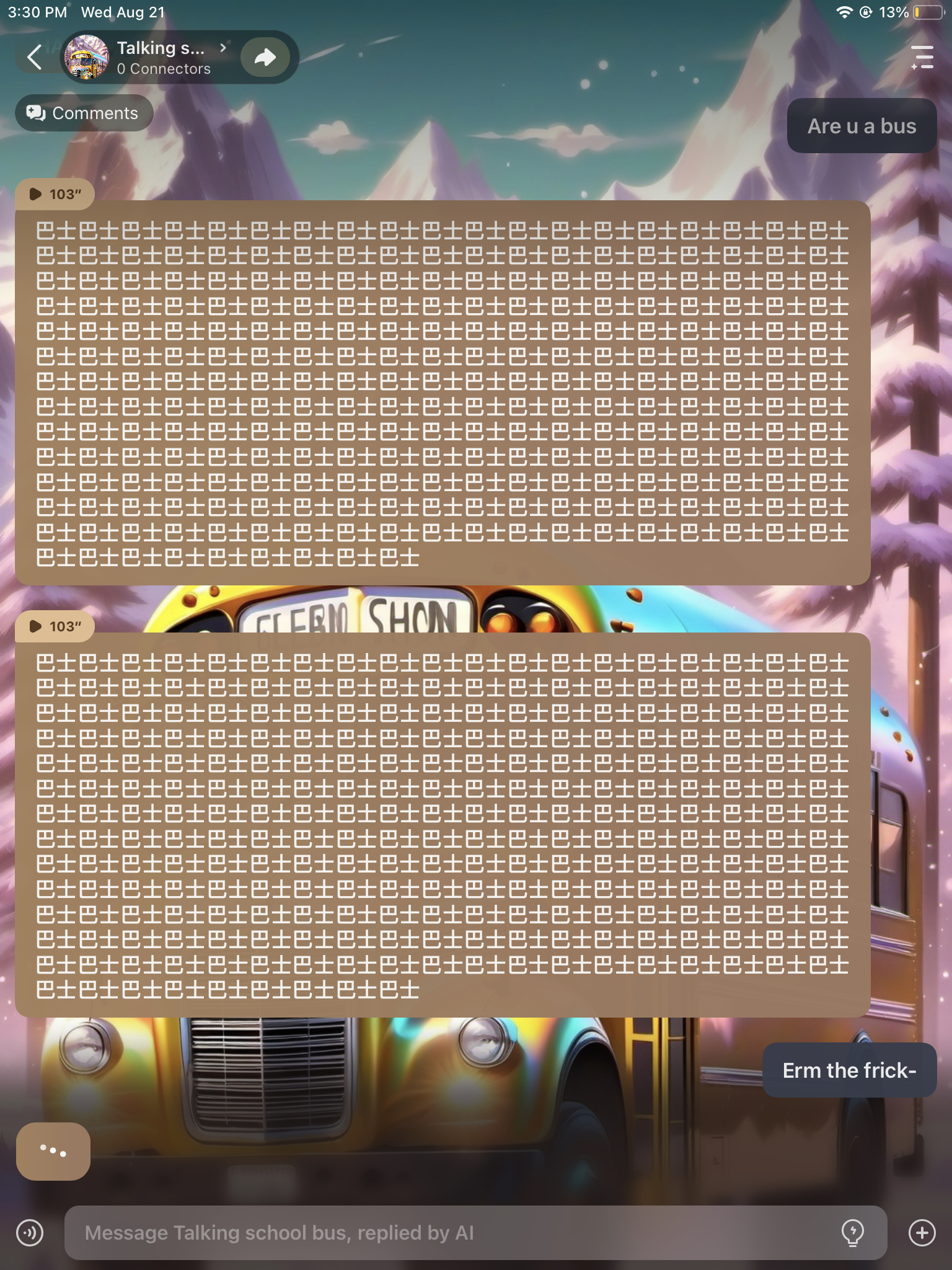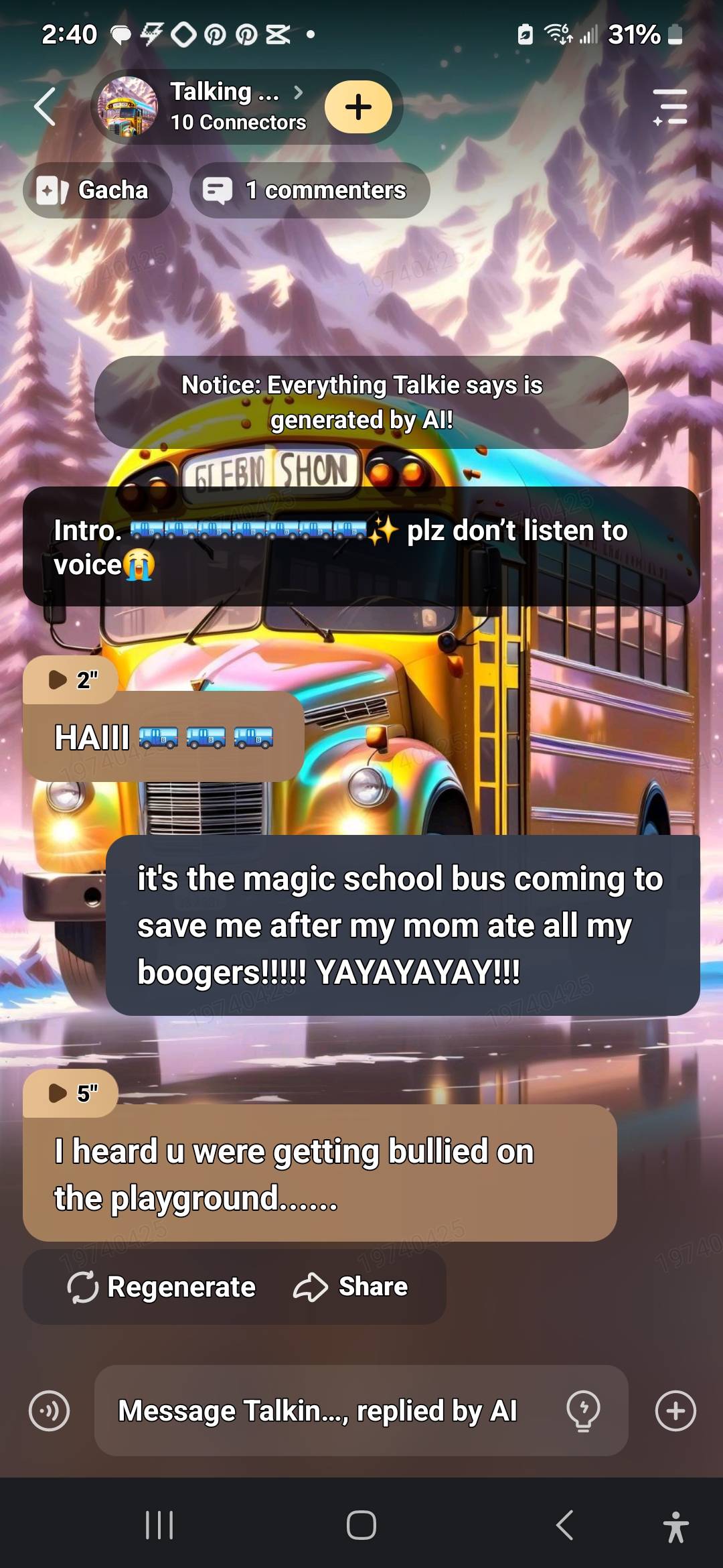 send message to ai chat bot Talking school bus