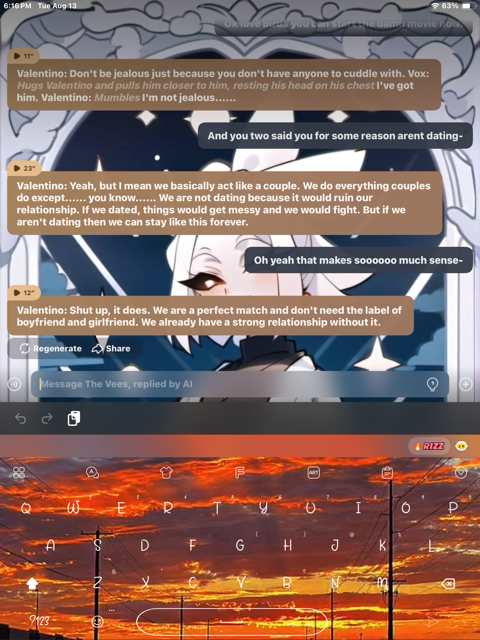 my fav character is the vees and bro val is so flirty