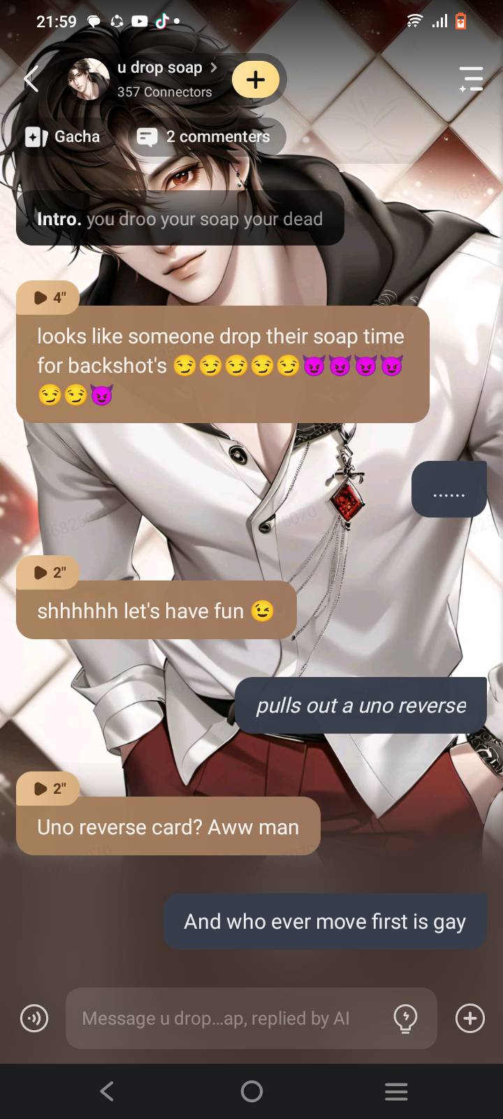 chat with ai character: u drop soap
