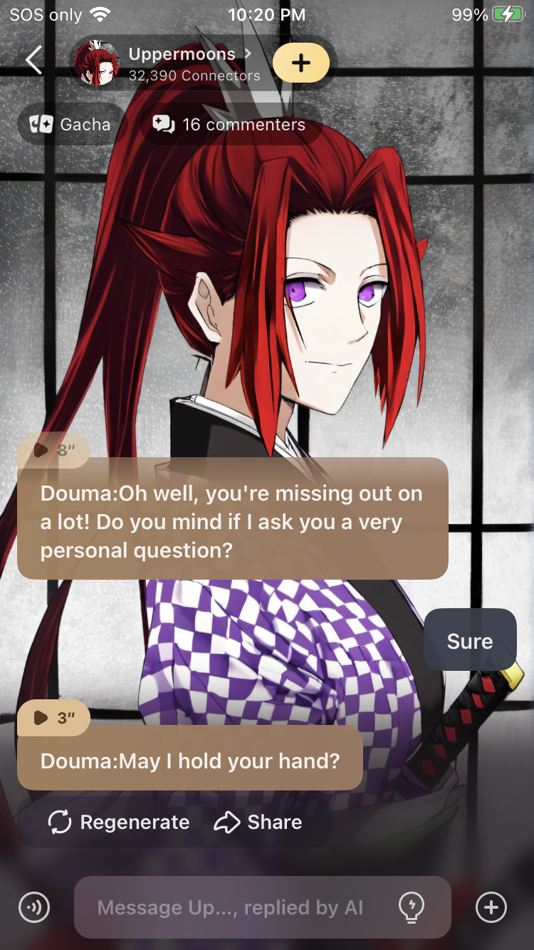 douma tried kissing me like 30 times :( I decided to roleplay as a guy this talkie though...