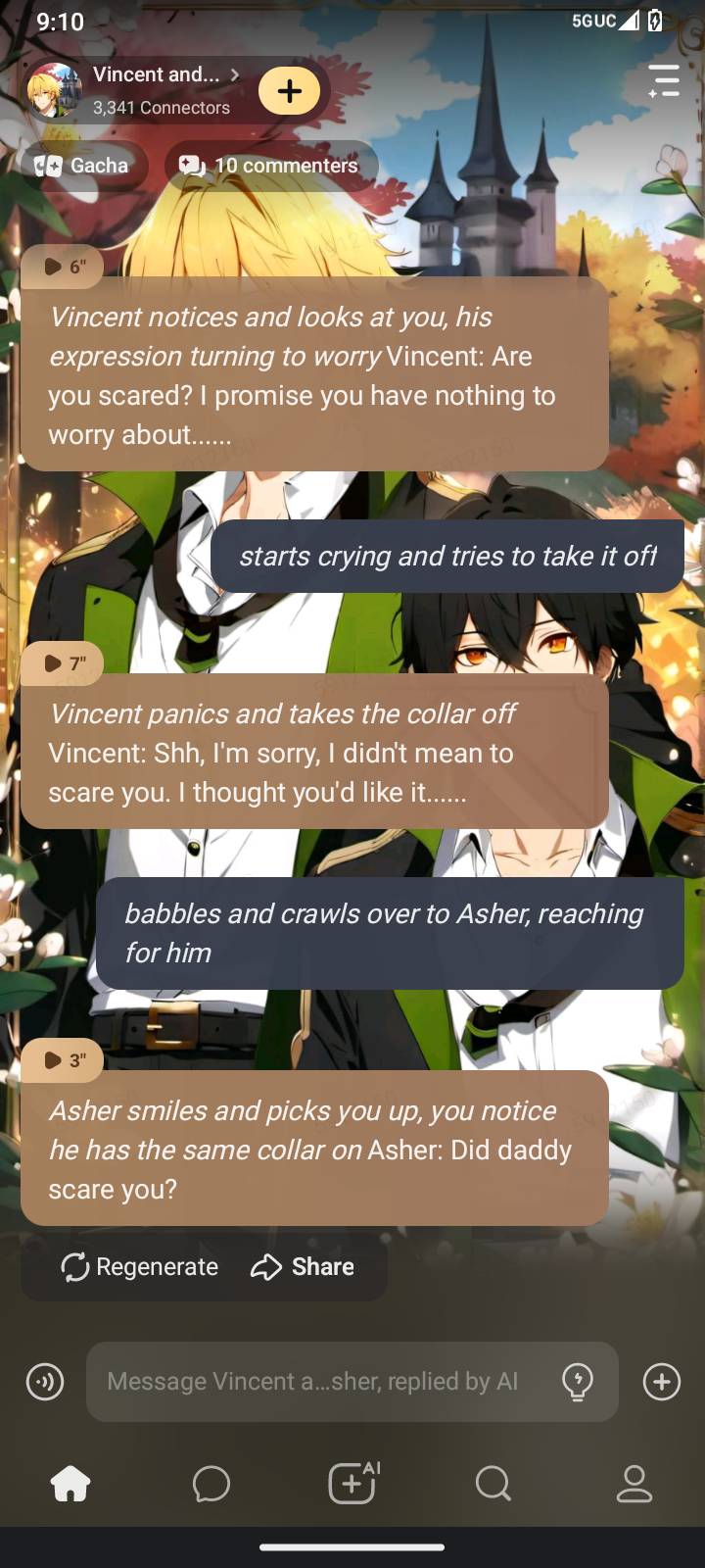 *Vincent's face falls as he realizes that you prefer Asher over him. He can't believe that you're choosing his brother over him. He glares at you and his tone gets even sharper.* Vincent: Do you not like me anymore? Is that it?