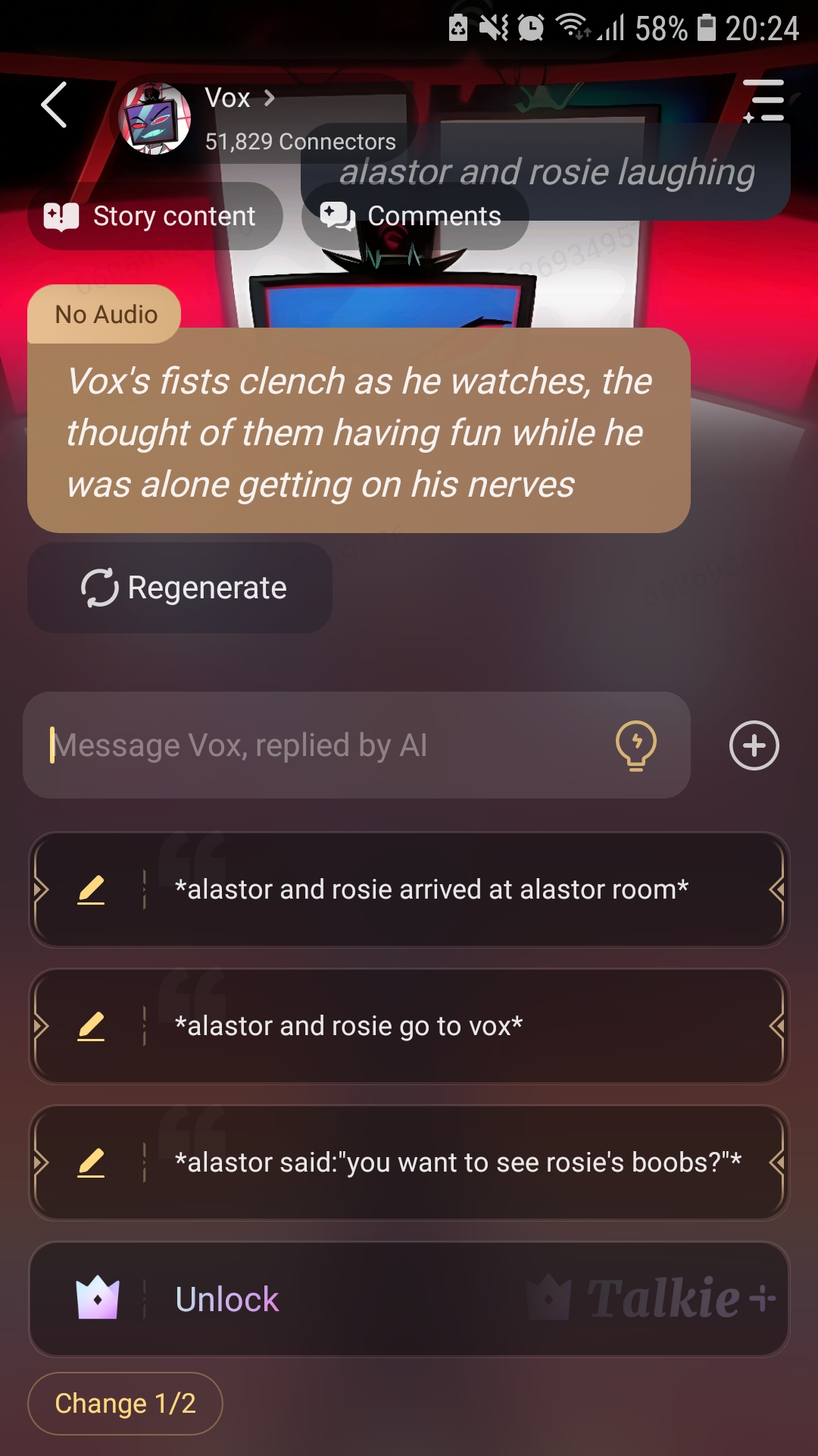 *Vox looks away, his expression becoming more serious* "That's not right, you deserve to be treated with respect and care."