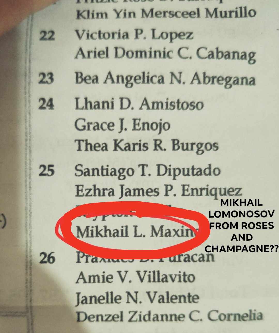 Everyone...I have news to say: "When i went to church and see the paper thingy and look at the birthdays....I SAW A NAME NAMED MIKHAIL- Mikhail L. Maximos (I am in a different church-) Or..Mikhail lomonosov..(Leewon's dad-)