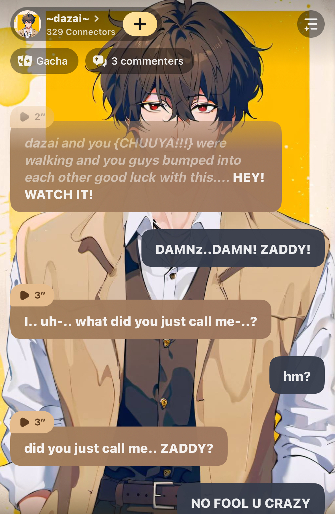 chat with ai character: ~dazai~