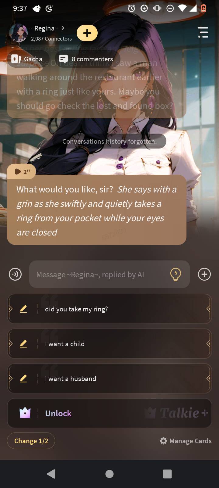 Ya'll, are there any advances I can make to Regina or my other talkies? Pls tell me! I've noticed that fewer ppl r going on my talkies! Pls tell me about issues.