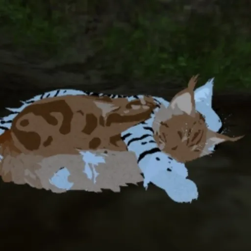 Streampaw: - A timid shekitty apprentice with calico patches mostly on her white fur with blue eyes.(Mentor: MudHeart, adopted kit)