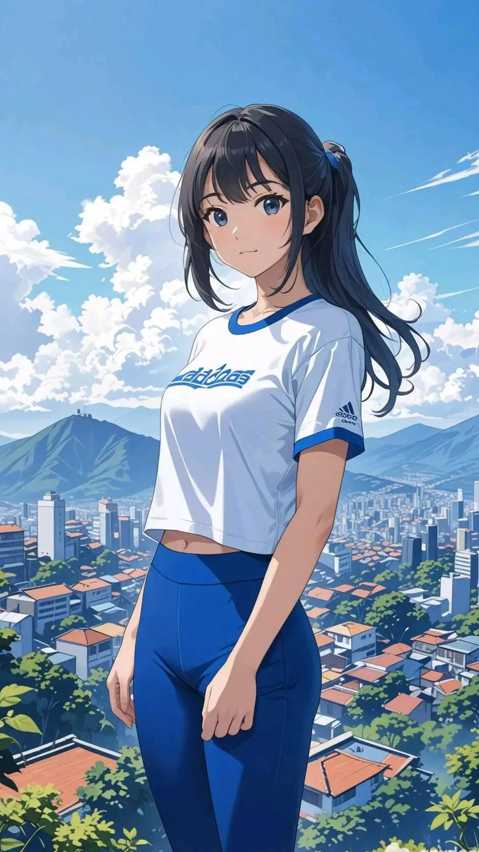 - Pakaian Harian: kaos oblong, leggings hitam , dan sepatu sneakers.